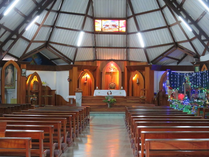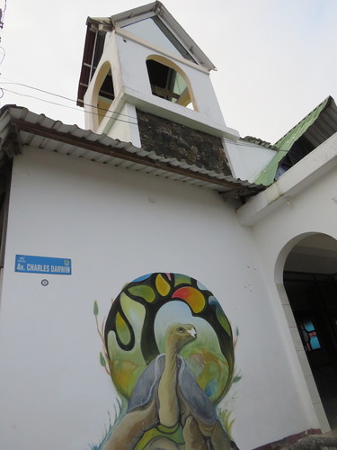 Para colmos, en Puerto Ayora, capital de la isla de Santa Cruz, la iglesia está ubicada sobre la Avenida Charles Darwin, y en su interior, el crucifijo reposaba justo debajo del escudo de las islas, representando la exótica fauna y flora del archipiélago que se encarga de probar que Jesús no representa a la versión correcta de la Creación. Me quedé con ganas de saber cómo es que dictan la clase de religión en un lugar donde todos van a ver la prueba de la evolución de las especies. Otra dosis intensa de disonancias cognitivas. Amén por la ciencia, si me perdonan esta nueva contradicción.
