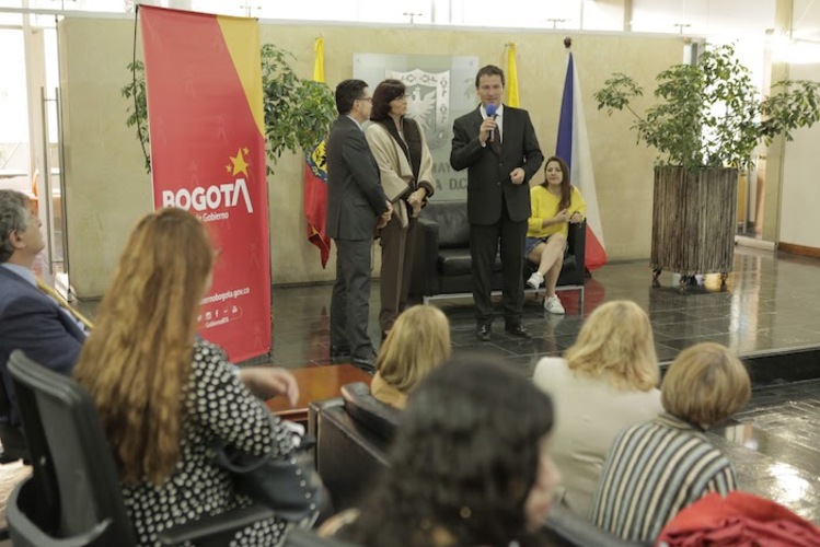En una pequeña ceremonia de inauguración estuvieron representantes de la Secretaría de Gobierno de Bogotá, de la Embajada de República Checa en Colombia, Asocheca, representantes de la Comunidad Judía como el Gran Rabino Alfredo Goldschmidt y Marcos Peckel, Director Ejecutivo de la Confederación de Comunidades Judías de Colombia, entre otros. El evento se celebró el pasado 5 de febrero en el marco de la Semana Mundial de la Armonía Interconfesional.