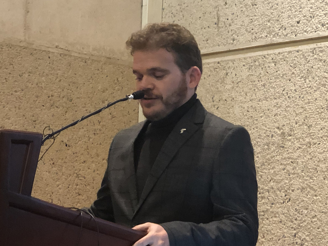 El Dr. Enrique Martínez, escritor de la obra “Quinta Sión” sobre urbanismo judío en Bogotá y sus historias, subió al estrado y leyó un texto de introducción en el que describe la historia de la ruta de Spiwak, el porqué del nombre del Hotel Dann, sobre la historia de los inmigrantes judíos que se hicieron colombianos y el papel de los judíos en Colombia.