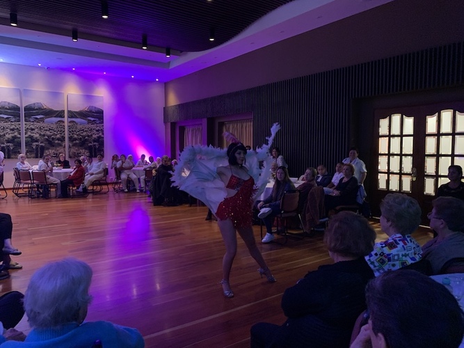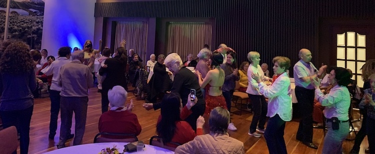 Casi cien personas entre residentes y visitantes participaron en el evento que inició con un show de danza realizado por dos profesionales. Bajo las luces de discoteca imitaron a Elvis Presley y a bailarines de charlestón, al igual que invitaron a todos los asistentes a acompañarlos en la pista de baile.
