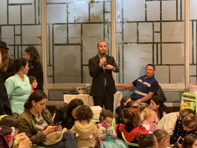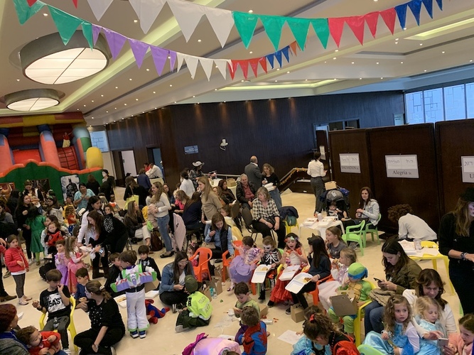 Más de doscientas personas participaron del evento que inició con una actividad infantil. Los niños pudieron disfrutar de inflables y máquinas de baile, hacer su propio mishloaj manot, participar en juegos de preguntas y conocimientos sobre purim, y ver un show especial de magia. Además recibieron sorpresas y una comida especial.