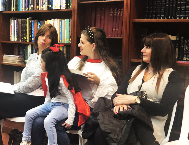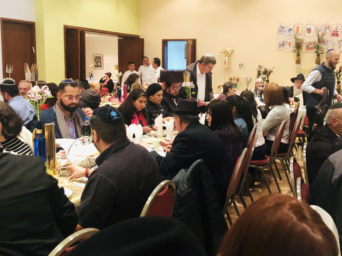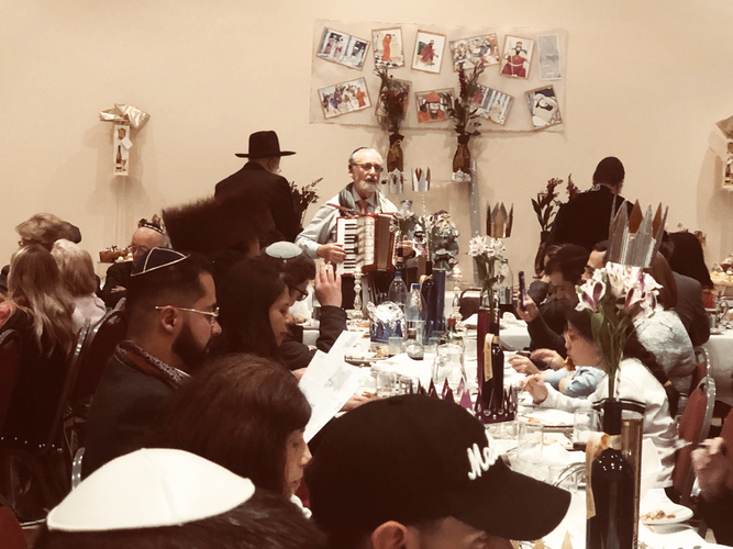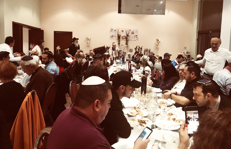 En seguida, en el primer piso empezó la reunión con la presencia de alrededor de 150 personas, se comió, se bebió, se cantó, varias personas dedicaron un saludo de Purim o un Dvar Torah. El rav Chanoch, el Rav Yehoshúa Rosenfeld director del proyecto Lubavitch en Colombia y el Rav Alfredo con su inseparable acordeón, hicieron de la noche un momento de sabiduría y de alegría. Los niños estuvieron jugando felices disfrutando también del momento.
