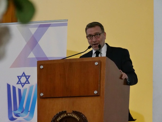 Compartieron sus mensajes el General Hoover Penilla Romero, subdirector general de la Policía Nacional, el embajador de Israel, Christian Cantor, el embajador de Alemania Peter Ptassek y Jean Claude Bessudo, presidente de la CCJC. El evento contó con la asistencia del expresidente de Guatemala, Jimmy Morales, la directora mundial de WIZO, Anita Vainberg, Victor Rhenals, director de asuntos religiosos del Ministerio del Interior y presidentes y miembros de las juntas directivas de comunidades e instituciones judías. Se encendieron las tradicionales velas y el acto finalizó con la recitación de plegarias, elevadas por los rabinos Alfredo Goldschmidt, David Michaan y Daniel Rosenthal.