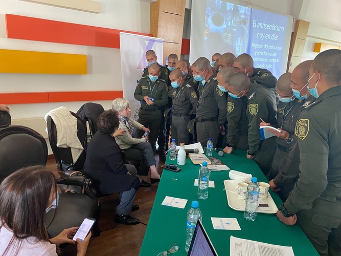 La Policía Nacional entendió la importancia de brindar estas herramientas a sus estudiantes y empezó a trabajar de la mano de la CCJC para reafirmar su compromiso para combatir manifestaciones de antisemitismo y la apología al genocidio. Desde el 2015, cada año la Organización de Naciones Unidas junto a la Embajada de Israel en Colombia, la Confederación de Comunidades Judías y la Fundación Zajor de sobrevivientes e hijos de sobrevivientes de la Shoa lleva a cabo un acto conmemorativo en recordación de las víctimas del Holocausto en 27 de enero. La conmemoración se ha realizado en diferentes espacios como el centro de Memoria Histórica en Bogotá, la Casa de la Inquisición en Cartagena, entidades educativas, embajadas y otros espacios de interés cultural. La Policía de Colombia participó en la organización de la conmemoración del 2022 y el acto se llevó a cabo en las instalaciones de la Escuela de Postgrados de Policía "Miguel Antonio Lleras Pizarro" en la ciudad de Bogotá. El evento contó con la presencia del General Hoover Penilla Romero, subdirector general de la Policía Nacional y con la asistencia a través de streaming de todos los estudiantes de las escuelas de policía a nivel nacional. Además, miembros del cuerpo de policía, incluyendo estudiantes de la Escuela Simón Bolívar de Tulúa, participaron de la campaña We Remember del Congreso Judío mundial que busca generar conciencia sobre el Holocausto.