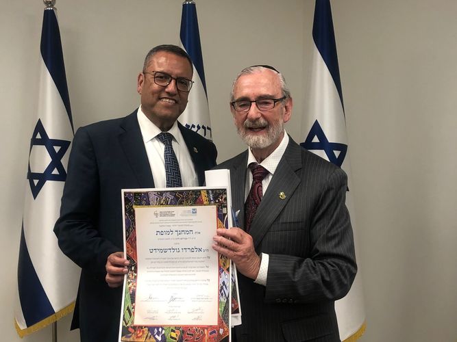 Éste año el gran rabino Alfredo Goldschmidt de Colombia fue merecedor del premio como educador ejemplar premio que recibió el pasado domingo 23 de octubre de manos del alcalde de Jerusalén Moshe Lion y Del gran Rabino de Jerusalem Shlomo Amar. El gran Rabino estuvo acompañado de la alcaldía y del mundo académico. Es un orgullo para nuestras comunidades este premio que recibió nuestro querido Rav.