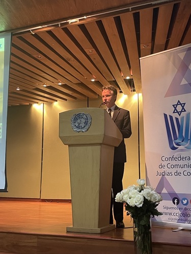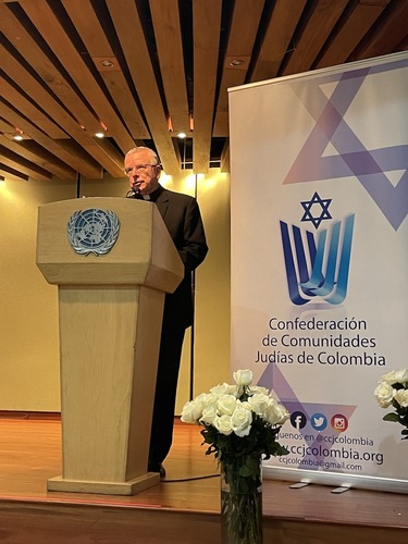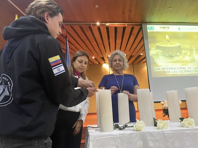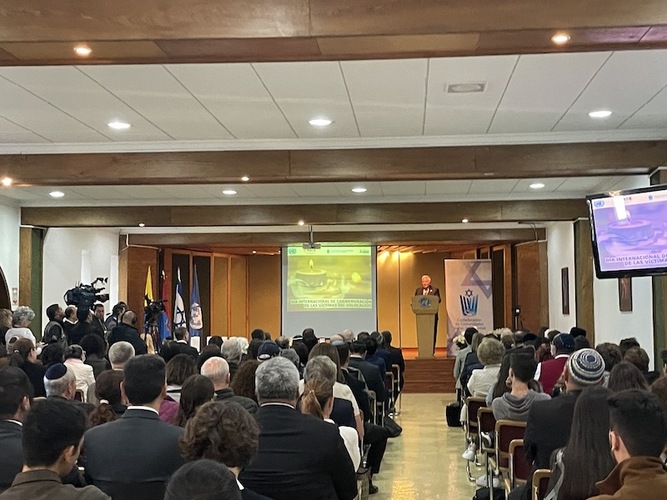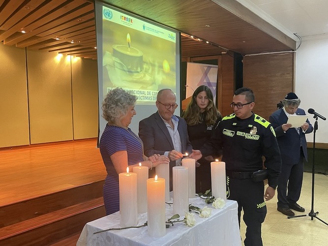 El viernes 27 de enero se realizó la Conmemoración del día Internacional de Víctimas del Holocausto en el Seminario Mayor de Bogotá. El evento fue organizado por Naciones Unidas, la Embajada de Israel, la Confederación de Comunidades Judías de Colombia, la Arquidiócesis de Bogotá y la Fundación Zajor. Contó con la presencia de embajadores, representantes del gobierno nacional, líderes religiosos y comunitarios. Durante el evento compartieron sus palabras el Nuncio Apostólico Monseñor Luis Mariano Montemayor, el embajador de Israel, Gali Dagan, los embajadores de Alemania, Austria, Rumania, Polonia y República Checa, y Amelia Cotes, directora de asuntos religiosos del Ministerio del Interior. Se realizó el tradicional encendido de velas y las tefilot a cargo de los rabinos comunitarios.
