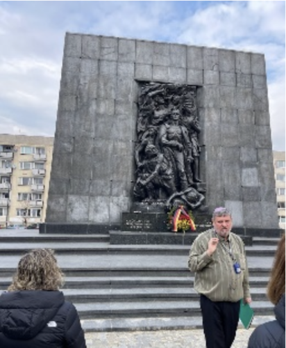 Continuamos nuestro recorrido en Varsovia donde nos sumergimos en lo oscuro que fue la vida en el ghetto. Aunque lo que fue el ghetto ya no existe, pudimos ver tan solo unos pocos tramos de las paredes que lo circundaban. Gracias a las imágenes fotográficas de nuestro guía Mario, pudimos tratar de visualizar lo que fue el famoso puente que comunicaba las dos secciones y la plaza de las deportaciones. Resaltamos la valentía y gran heroísmo de Mordechai Anielewicz y los movimientos juveniles en la resistencia y el levantamiento del ghetto.