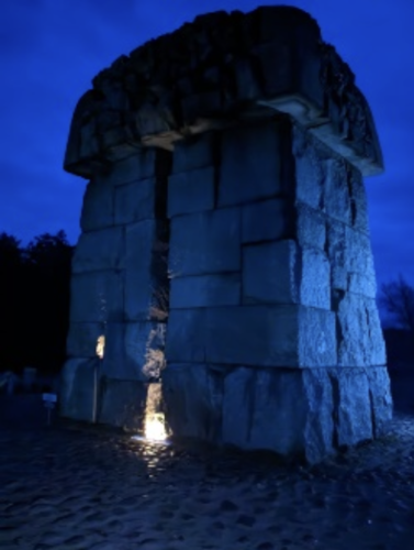 Visitamos también Treblinka (de noche y lloviendo) ubicado en medio de un bosque al nor-este de Varsovia. Este campo funcionó exclusivamente para el exterminio donde el promedio de vida era de tan solo 2 horas. En los 13 meses entre 1942 y 1943 fueron asesinados 850,000 judíos. Treblinka fue totalmente destruido y en su recuerdo se levantó un gran monumento. También se colocaron 17,000 piedras de diferentes tamaños representando tumbas y 216 de ellas están inscritas con los nombres de los pueblos de donde provenían las deportaciones.