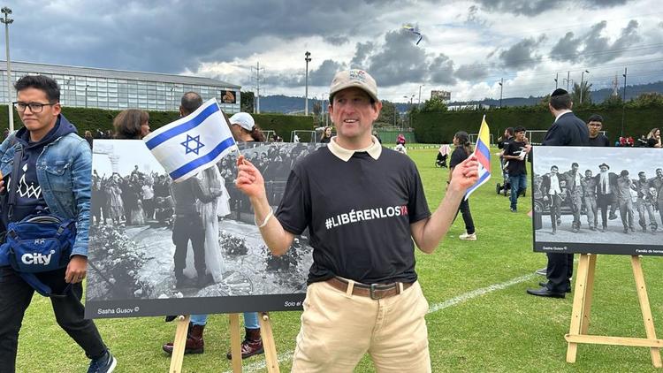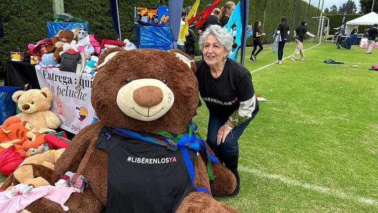 La comunidad de Yovel, regaló a todos los visitantes una camiseta con el texto: #libérenlosya. Se puede ver en la fotografía al “oso sionista” de Rosita Dargoltz, quien también resultó honrado con esta camiseta.