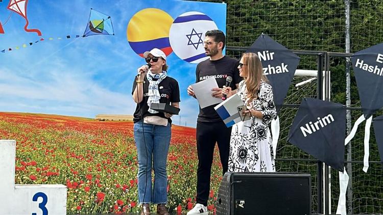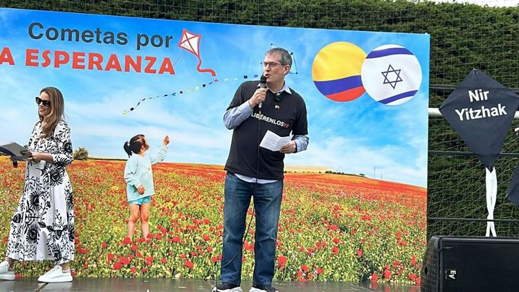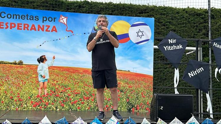 El profesor Peckel por la CCJC, habló sobre el doloroso momento histórico que estamos viviendo. El Embajador de Israel, Dr. Gali Dagan, agradeció a David Drezner (CCC), a Marcos Peckel (CCJC), a Rafael Mizrachi (CCH), a Karen Gritz (Periodista), a Bela Himelfarb (MACABI), a Raúl Rubio (YOVEL) al equipo de la embajada, a Itay Jovi quien estuvo al frente en Gaza y vino a Colombia a celebrar el día de las cometas por la paz, por la esperanza y la liberación, agradeció muy especialmente la solidaridad del pueblo colombiano.