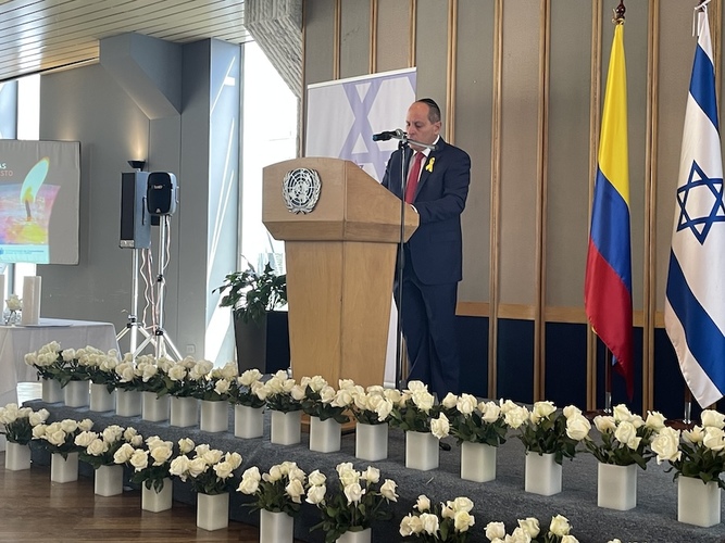 El Embajador de Israel en Colombia, Gali Dagan, reiteró la importancia de esta conmemoración en un momento en el que el antisemitismo está tomando fuerza y especialmente después de la masacre del 7 de octubre que terminó con la vida de más de 1200 israelíes y más de 130 personas todavía secuestradlas. La Embajadora de Alemania, Martina Klump y la Coordinadora Residente Naciones Unidas, Mireia Villar Forner también compartieron un mensaje.