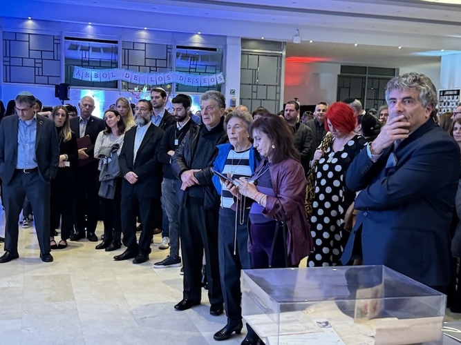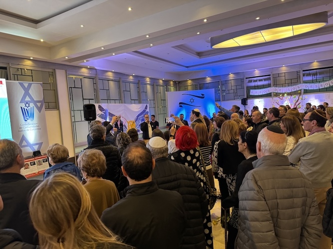 Jael Birbragher, presidenta de la Agrupación de Damas Sefaradí dio un saludo inicial. George Levy, presidente de la CCJC y el Embajador Gali Dagán, compartieron unas palabras con el público antes de que el Rabino David Michaan de la CHS dirigiera unas plegarias por los soldados, los secuestrados, los heridos y las víctimas del 7 de octubre.
