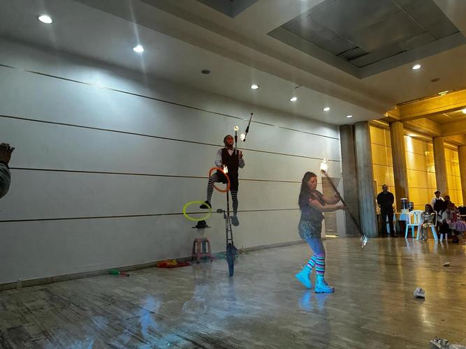 ¡Al terminar la pizza nos sentamos en unas sillas donde recibimos un paquete de maíz pira para disfrutar de un show espectacular ¡de unas malabaristas con fuego! Terminamos la noche recibiendo un mishloach manot de parte de Adat Israel.