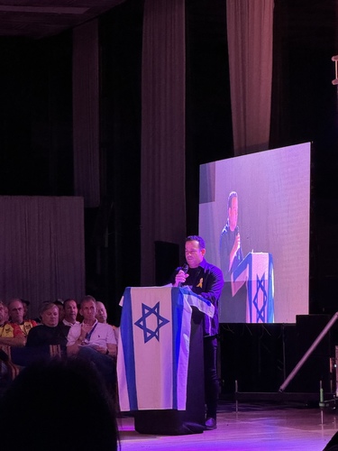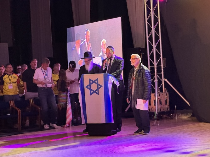 Kobi Valer, jefe de misión adjunta de la Embajada de Israel, Sami Sztokfisz presidente de CLAM y Andrés Peñuela, presidente de Macabi Colombia, dirigieron unas palabras a los asistentes y deportistas. Además, los rabinos Alfredo Goldschmidt, David Michaan y Yehoshua Rosenfeld, realizaron tefilot por Israel, los secuestrados y por un buen desarrollo de los juegos macabeos.