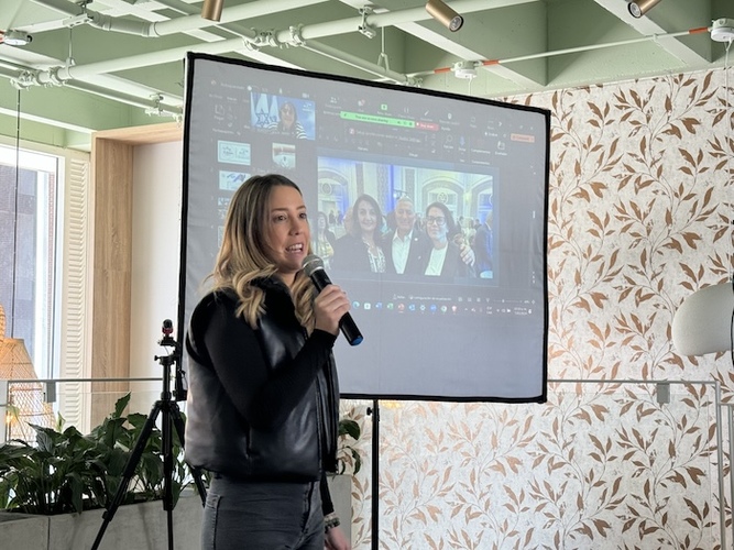 Alice Jamri, conectada desde Israel, le dio la bienvenida a Michal Rahav, la oradora principal. Michal es sobreviviente del 7/10. Contó la desgarradora historia de cómo ella y su familia sobrevivieron el 7 de octubre cuando terroristas asediaron su casa en el Kibutz Nir Im y cómo tuvieron que huir de su hogar, dejando todo atrás.