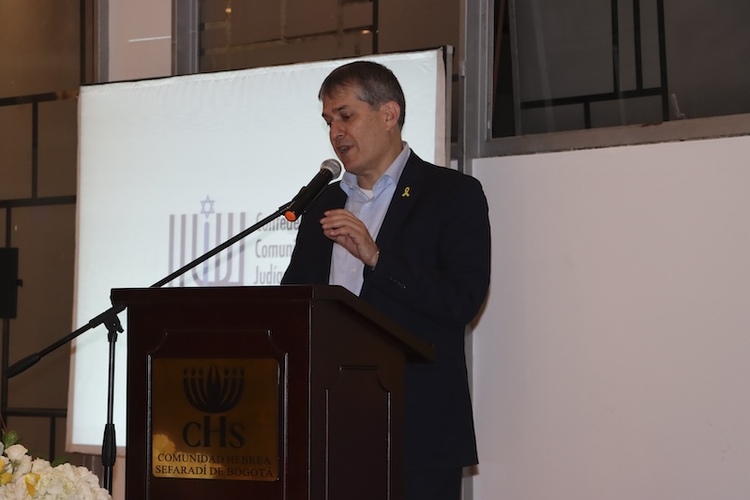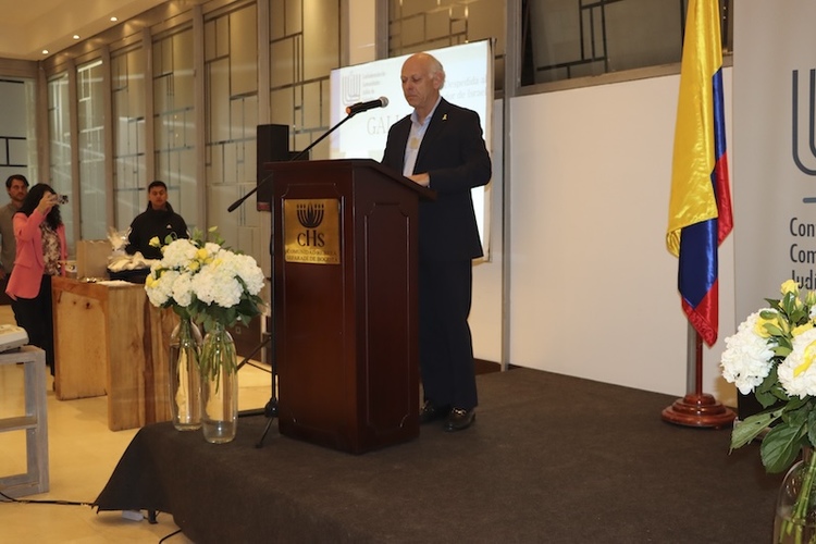 El presidente de la CCJC, George Levy tomó la palabra y dijo “…por el sinsentido de su salida de Colombia, hoy quedamos incompletos…”, además aclaró que el pueblo de Colombia respalda a Israel.