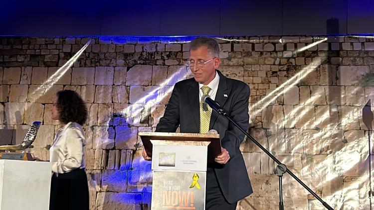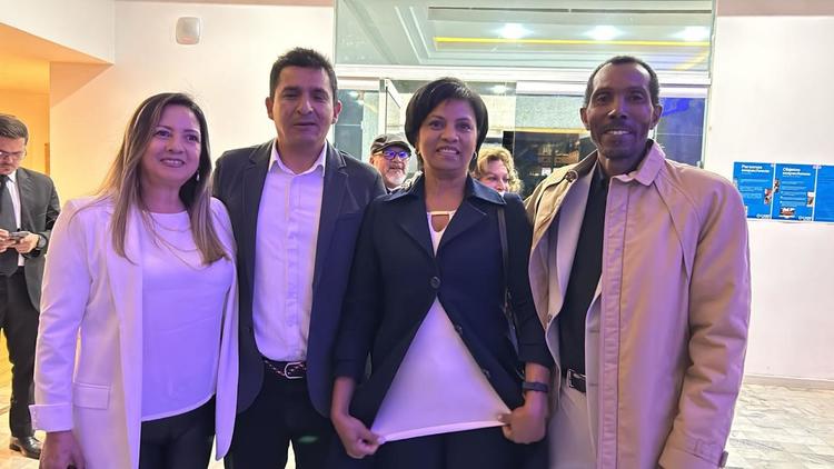 El profesor Marcos Peckel representando la CCJC, dirigió emotivas palabras al Pastor y destacó las múltiples actividades realizadas en conjunto de esclarecimiento y apoyo a Israel, que durante años se han ido realizando. Recordó momentos como la marcha de la vida desde hace años, el despliegue de banderas de Israel en diversas ocasiones, la defensa activa frente a acciones antisemitas, y en especial frente a la posición del actual gobierno de Colombia de carácter antisemita, demostrando Rubio y su comunidad, la fortaleza de sus principios, su valentía y entereza.