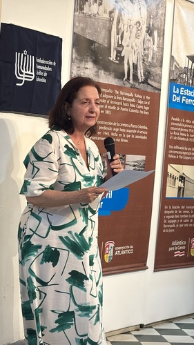 Lucy Esquenazi de Dreszer, directora de la Sociedad Genealógica Judía Colombiana, recordó cómo su papá había llegado a los 15 años, huérfano y sin familia y cómo salió adelante ayudando a construir la historia del país. Enseguida se dirigió el representante del alcalde de Barranquilla, quien confesó estar impactado con las palabras de Lucy Esquenazi.