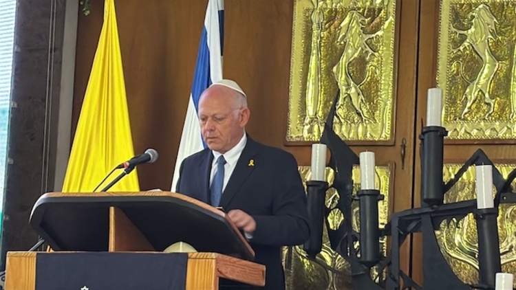 Durante esta ceremonia sinagogal, habló el presidente de la CCJC, George Levy, cuyo importante discurso estamos publicando en Hashavúa en la sección de artículos, la presidente del CIF, llamó embajadora de Alemania, Martina Klumpp, la Gobernadora encargada de Atlántico, Cecilia Arango y Kobi Valer, jefe de misión del consulado de Israel. Los rabinos presentes dieron su bendición: Rav Iehuda Gitelman, Rav Yosi Liberoff, Rav Julian Vaistein y el Rav Alfredo Goldschmdit, éste último con su fabuloso trío del cantantes de Bogotá y su ya famoso acordeón, cantando en Yidish.
