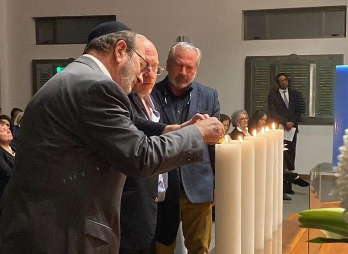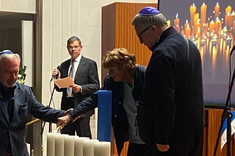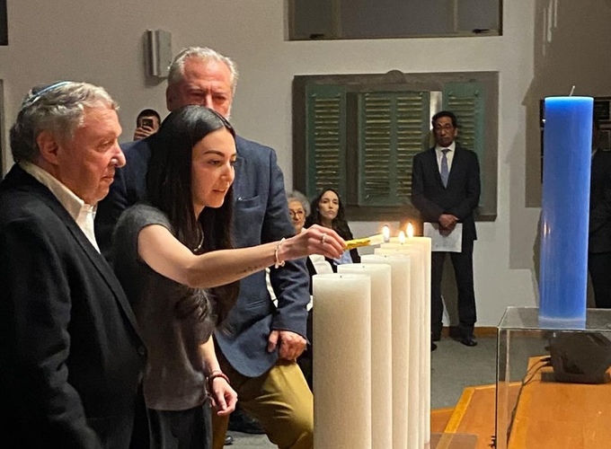ND: Las tradicionales velas fueron encendidas por sucesores de sobrevivientes: Donald Kirschberg, Alberto Kopec, Hermanos Halstuch, Eduardo Translateur, Tommy y Hanna Chaskel, Jack Goldstein, Miriam May, Raquel Gúterman, Myriam y José Leibovich e Inge Fröelich.