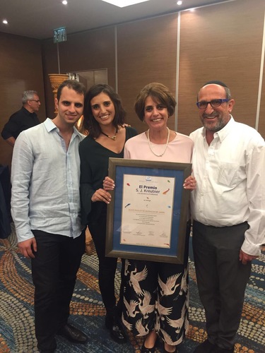 El premio le fue entregado por parte de la Directiva del Keren Hayesod, Eliezer Moodi Sandberg: Presidente Mundial. Greg Masel: Director General. David Koschitzky: Presidente del Consejo Mundial de Fideicomisos. Yoel Embon: Director para América Latina y Julia Koschitzky: Presidenta Honoraria.