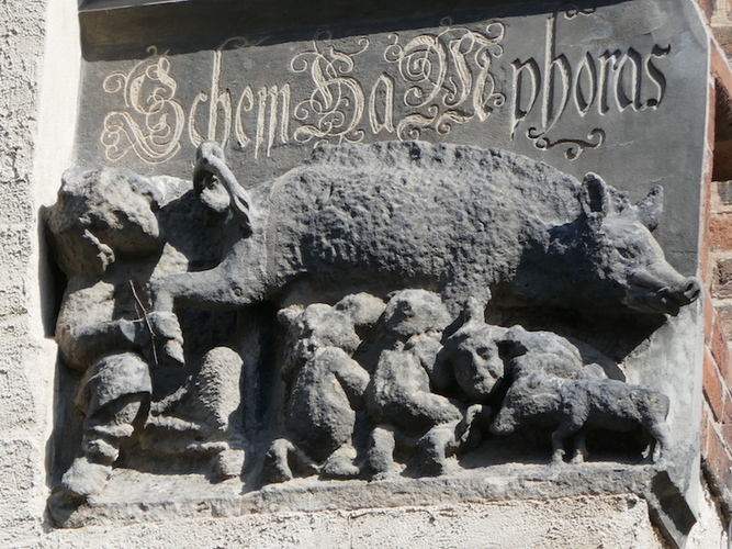 La escultura en Wittenberg, que data de 1305, es conocida por la mención al nombre de Dios, Shem Hamphoras, que se destaca en la fachada de la iglesia, encima de la marrana. El espíritu de ese Judensau quedó evidenciado en el tristemente célebre texto de Lutero “De los judíos y sus mentiras”. Es ahí, en el capítulo que tuvo a bien bautizar “von Shem Hamephoras” donde invita a las masas a destruir sinagogas, quemar libros y expulsar judíos, inspirando así a la Shoa.
