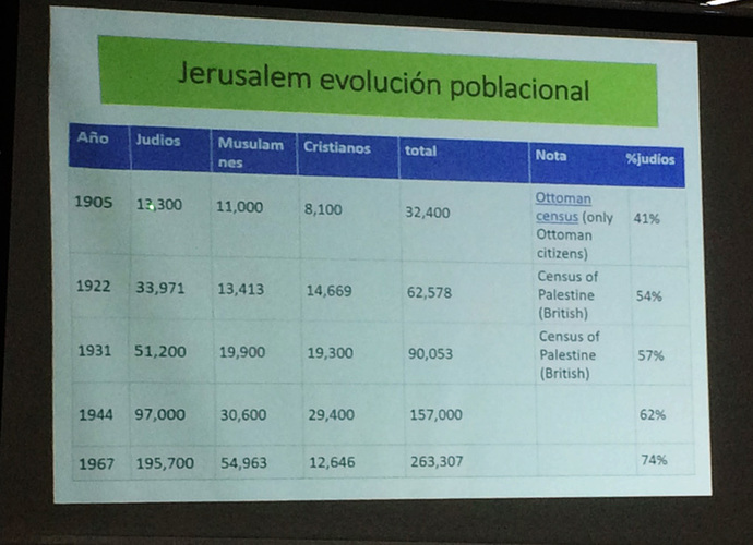 Hizo un recorrido histórico desde sus principios cuando el Rey David la nombró capital de Judá y tantos momentos históricos que ha vivido la ciudad, con tantos cambios de gobierno, pero siempre hubo presencia judía. Existía ya un barrio judío desde el siglo VIII. En 1905, había 13.300 judíos que representaba el 41% de la población. Este porcentaje fue subiendo y en 1967, ya había una población judía de 195.700 judíos siendo el 74% de la población en Jerusalem.