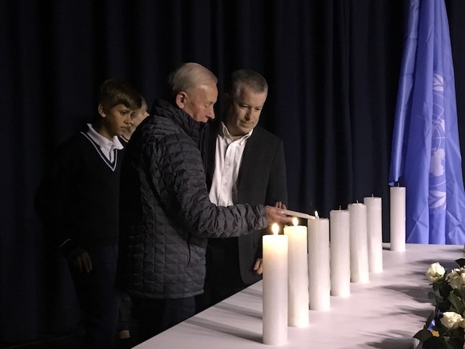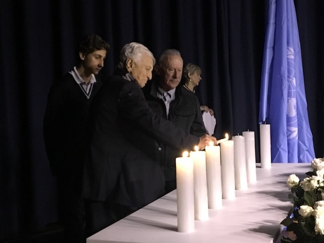 El emotivo acto tuvo varias intervenciones de representantes nacionales y comunitarios. Además de la proyección un video con el mensaje de Antonio Gutérrez, Secretario General de la ONU, las siguientes personas dieron discursos: Hélèn Papper, Directora del Centro de Información de las Naciones Unidas para Colombia Ecuador y Venezuela, el Embajador de Israel en Colombia, Sr. Marco Sermoneta, el Sr. Rodrigo Rivera, Alto Comisionado de Paz en Colombia, la Sra. Lisa Cohen, Presidenta del CCH, el Dr. Salomón Kalmanovitz, El Sr. Marcos Peckel, presidente de la CCJC, y el Sr. Martín Santiago, Coordinador Residente de la ONU en Colombia.