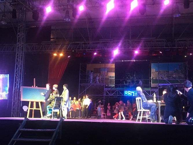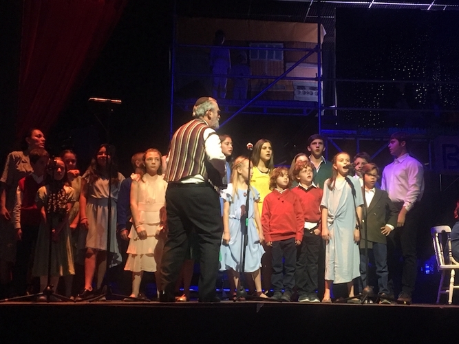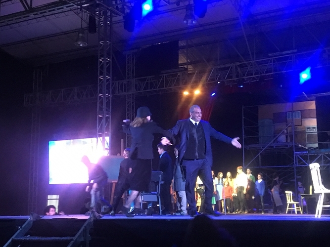 Profesores y ex alumnos también hicieron parte del evento. El coro dirigido por el Rabino Alfredo Goldschmidt (quien corrió de un lado al otro del coliseo como todos los alumnos) se lució especialmente. Tras bambalinas, alumnos del plantel se encargaron no solo de la decoración y vestuario sino también de mover la escenografía y ayudar a los actores a moverse de un lado a otro del escenario.