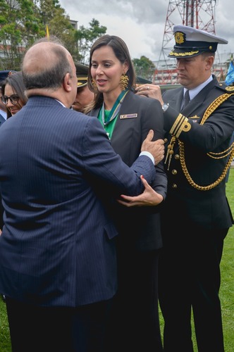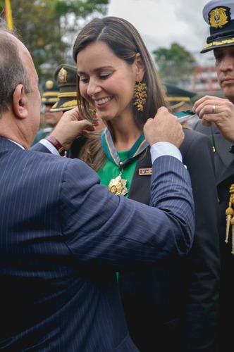 El Gobierno de Colombia, en cabeza del Ministro de Defensa Nacional, Luis Carlos Villegas, y los Comandantes de las Fuerzas Militares y de Policía, confirieron la Medalla Militar Ministerio de la Defensa Nacional, en el grado Gran Oficial, y la Citación Presidencial, a nuestra comunitaria Adriana Pico Maffiold, en reconocimiento a sus labores en la Dirección de las Comunicaciones Estratégicas y Sectoriales del Ministerio de Defensa. La imposición de la Medalla y la entrega de la Citación Presidencial se hicieron durante una ceremonia militar que contó con la Presencia de los Altos Mandos Militares y de policía, y de destacamentos del Ejército, la Armada, la Fuerza Aérea y la Policía Nacional.