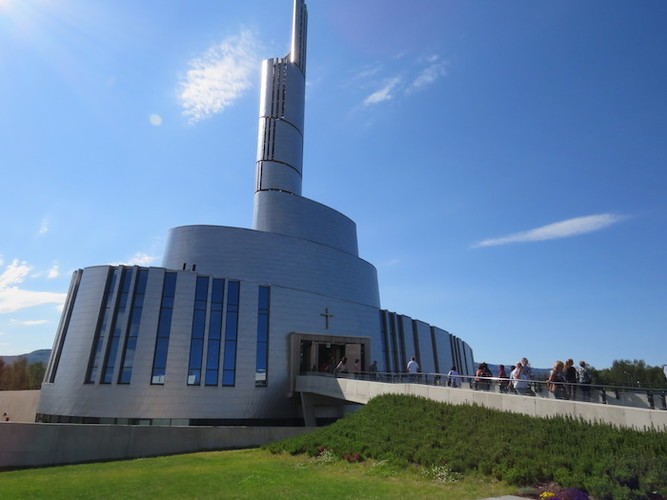 Hasta ahí la originalidad y genialidad del gran maestro, pero cosa aparte es toparse con un Jesucristo rezando con tefilín como figura central de una iglesia. La Catedral de las Luces del Norte, en Alta, Noruega, es una formidable obra de arquitectura inaugurada en 2013. Esta iglesia luterana, casi en el extremo norte de este país y bastante arriba del círculo polar ártico, es una obra maestra hecha en hormigón y titanio representando las auroras boreales. Su fachada es magnífica. A la entrada, la torre del campanario surge de en medio del recinto, pero está vacía por dentro; mirando hacia arriba se ve únicamente la escalera de Jacob subiendo al cielo. El órgano, integrado a sus hermosas paredes, tiene 29 voces y 1.800 tubos. Y de manera sencilla y humilde, resaltado sobre un fondo de azul cielo desvanecido, está un Jesús de más de 4 metros de alto, fundido en bronce. Jesucristo está vivo y clama al cielo. Su autor, el danés Peter Brandes, quiso representarlo en su esencia: Fue un judío piadoso y por eso lo muestra agonizante rezando con sus tefilín (de mano) puestos.