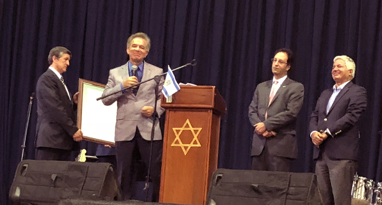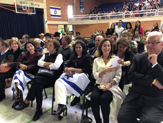 Fueron entregado diplomas de homenaje a la Embajada de Israel y su representante el Embajador Sermoneta, al Sr, Luis Szapiro, representando el aporte a Colombia en su calidad de presidente de la Cámara de Comercio y a la Confederación de Comunidades Judías de Colombia entregando a su representante el Dr. Jaime Rosental. El Dr, Roental invitó al escenario personalidades de nuestra comunidad presentes para recibir dicho honroso diploma: Jacqueline Szapiro de Donskoy, Jean Claude Bessudo, Rabino Alfredo Goldschmidt, Liza Cohen (Presidenta Junta CCH), Estela Coiffman (Zajor).