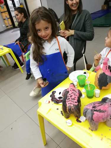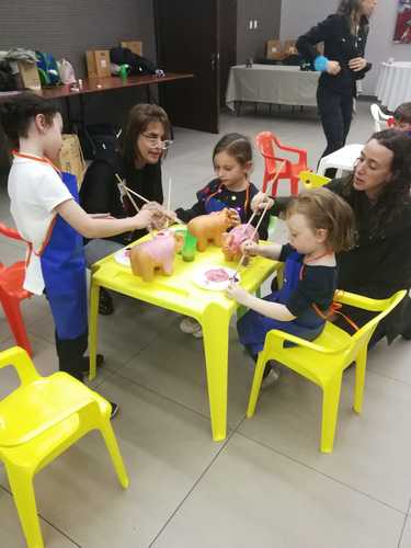 Después de escuchar los dos cuentos, “Un día en la vida de Elephantus” y “Elephantus” en otro cuento, los participantes se concentraron en pintar las alcancías en forma de elefante que estaban destinadas para esta actividad.