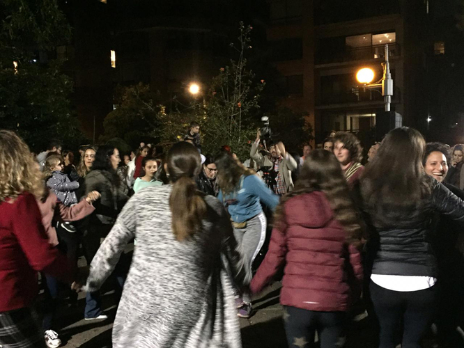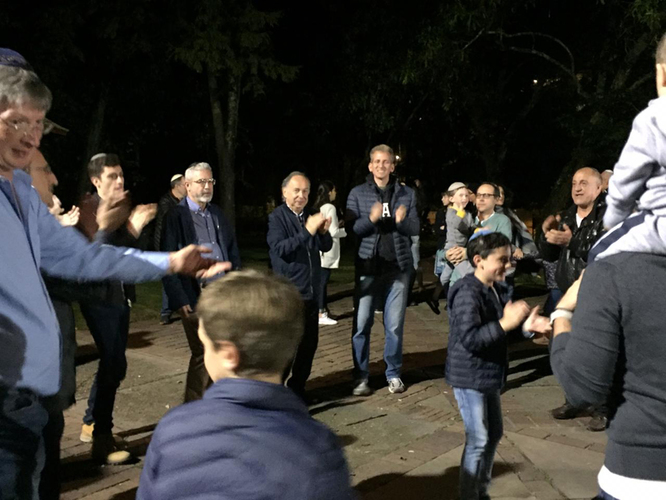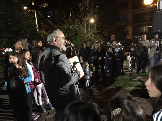 Chabad ofreció este año crocantes y deliciosos latkes de papa y fantásticos sufganiot, después de lo cual la reunión era en el parque Bavaria de la carrera 9 con calle 94, donde se reunieron 430 personas, para encender la janukiá y bailar con mucha alegría.