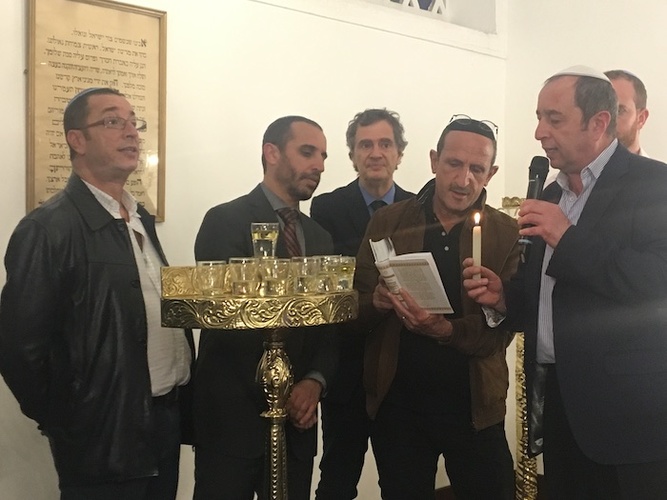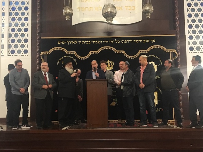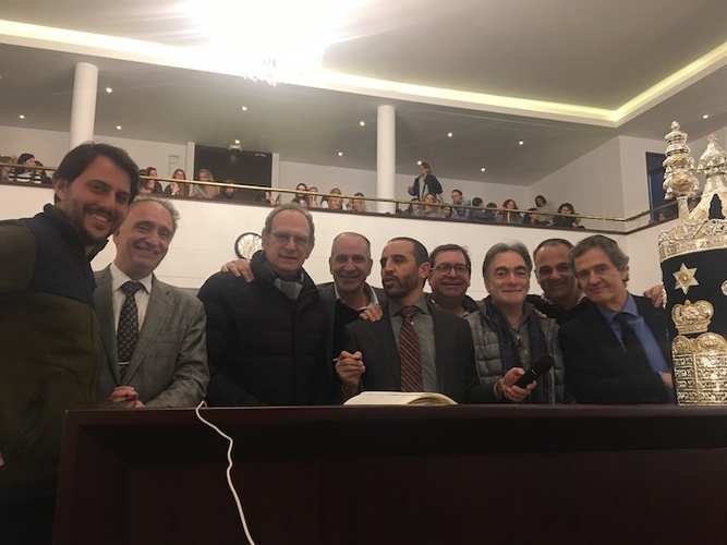 Elie Doueke compartió unas palabras en las que agradeció a Dios la oportunidad de realizar la donación en memoria de su padre y suegros. Explicó que la idea nació hace 6 años cuando estuvo en la sinagoga en la que su papá había sido jazán, donde vio un Sefer especial para niños en edad de Bar-Mitzva. El Rabino Avi Amsalem y el consul de Israel Yuval Sharabi ayudaron a cumplir la mitzva.