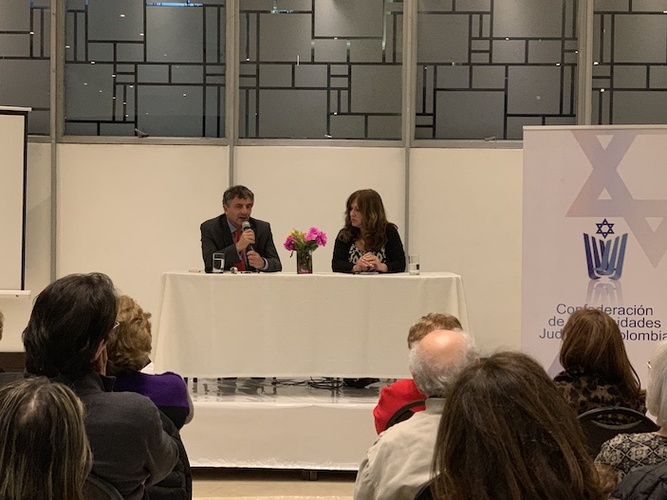 La noche del martes 12 de marzo se realizó en la Comunidad Hebrea Sefaradí un conversatorio entre la periodista Jana Beris y Marcos Peckel, Director Ejecutivo de la Confederación de Comunidades Judías de Colombia.