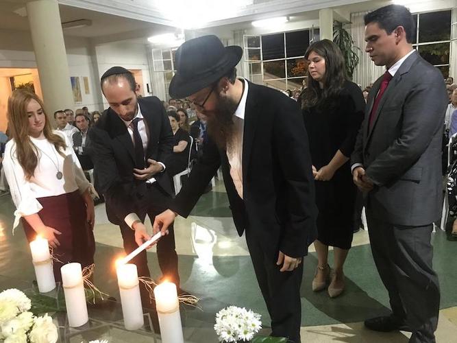 Una vez entonados los himnos de Colombia e Israel por parte de las más de 150 personas asistentes, Karen Kadoch y Silvya Valle como presentadoras, procedieron a dar inicio a la ceremonia del encendido de las siete velas, seis de ellas en memoria a los seis millones de judíos que fueron asesinados durante la Shoa, y por los cuales se guardó un minuto de silencio, y una última vela, la de la esperanza en nombre del millón y medio de niños judíos que perecieron asesinados en la Shoa y que fue encendido por los madrijim de Yaala.