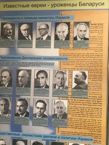 Varios de los padres fundadores del Estado de Israel y del movimiento sionista provienen de estas tierras bielorrusas: Jaim Weizman, padre de la declaración Balfour y primer presidente de Israel, nació en el Shtetl de Motal, Menajem Begin en Brest-Litovsk, ciudad en la frontera con Polonia, Itzjak Shamir en Ruzhinoy, Shimon Peres en Vishnyeva al igual que Nahum Goldman. También vieron la luz en estas tierras Louis Mayer, fundador de la MGM nacido en Minsk, Eliecer Ben Yehuda, compilador del primer diccionario hebreo moderno y el gran artista Marc Chagal. De Bielorrusia emigraron a Estados Unidos los ancestros de Harrison Ford, Kirk Douglas, Jared Kushner y Noam Chomksy. Igualmente los padres del asesinado primer ministro de Israel Yitzhak Rabin eran nativos de Bielorrusia. El museo judío de Minsk presenta fotografías de estos ilustres hijos de Bielorrusia.