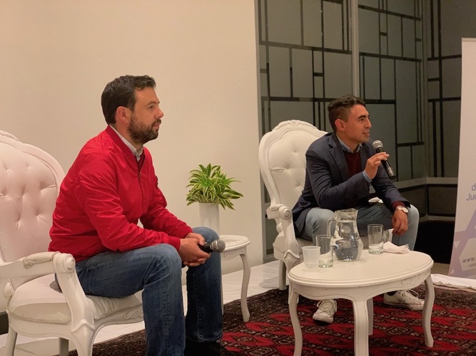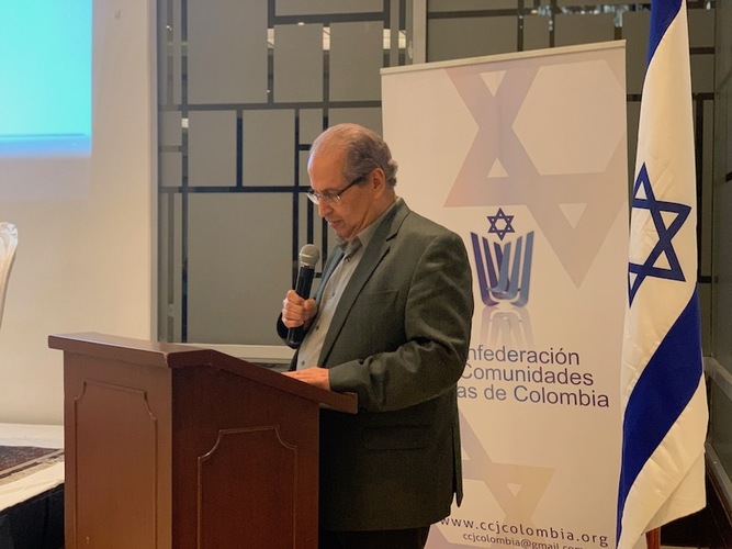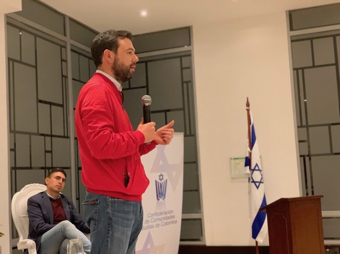 La presentación la realizó Jaime Rosenthal, miembro del Comité Ejecutivo de la Confederación de Comunidades Judías de Colombia. Después de proyectar un corto video sobre las labores de la CCJC, subieron al escenario Francisco Londoño, candidato al Consejo de Bogotá, y el candidato Galán.