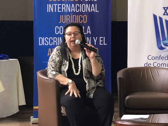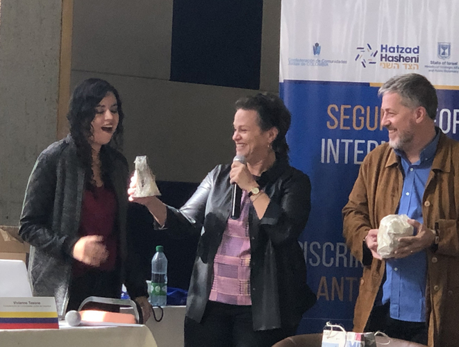 A continuación un importante panel en el que participaron con sus ideas y soluciones frente a la discriminación y el antisemitismo: La doctora Jazmin Balaguer –Colombia-, sobre la peligrosa tergiversación informática; la Dra, Andrea Vainer –Brasil- sobre la propaganda antisemita disfrazada de anti-israelí por el caricaturista Carlos Latuff; El Dr. Roberto Krochick –Argentina, Entre Ríos- sobre cómo los gobiernos argentinos han ignorado el caso AMIA, y la Dra. Silvana Botol –Costa Rica-, sobre los diversos proyectos en Costa Rica para manejar el antisemitismo; moderador: Marcelo Isaacson –Uruguay-. Finalmente y cerrando con broche de oro, la brillante presentación de la Dra. Dayana “Yaya” Blanco, quien expuso sobre la discriminación racial y de LGTB en Colombia.